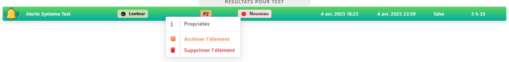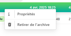 Pour restaurer un incident archivé ou supprimé, faites-un clic-droit puis Retirer de l’archive ou de la corbeille pour le restaurer