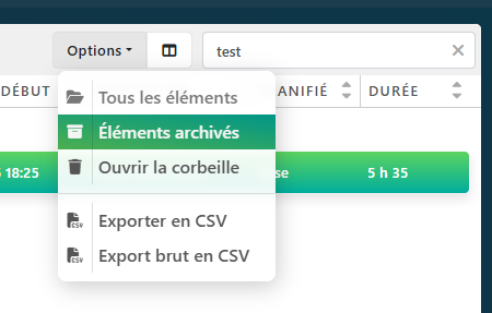 Vous pouvez accéder à la corbeille et à l’archive en sélectionnant le menu Options dans la fenêtre de gestion des incidents.