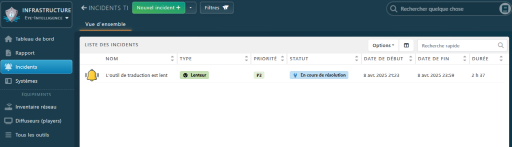 Double cliquez sur un incident pour le modifier, vous pourrez alors modifier le statut ou résoudre l’incident.
