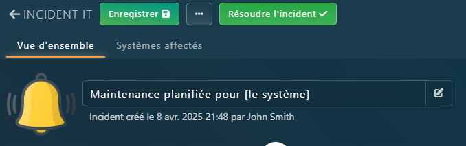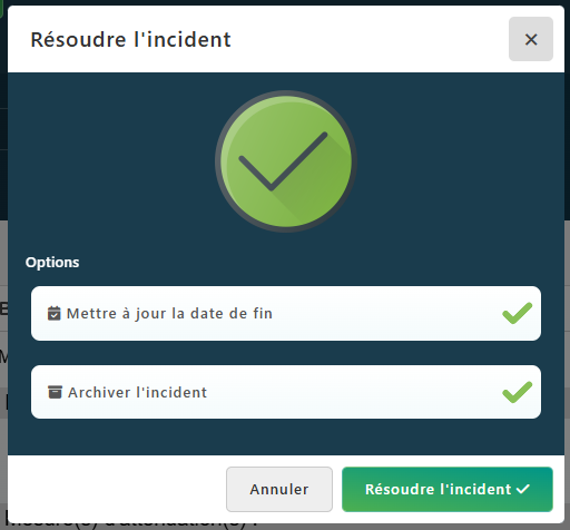Une fois qu’un incident ou une maintenance sont terminés, vous pouvez « Résoudre l’incident »