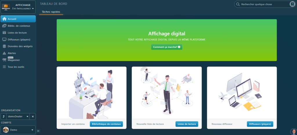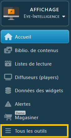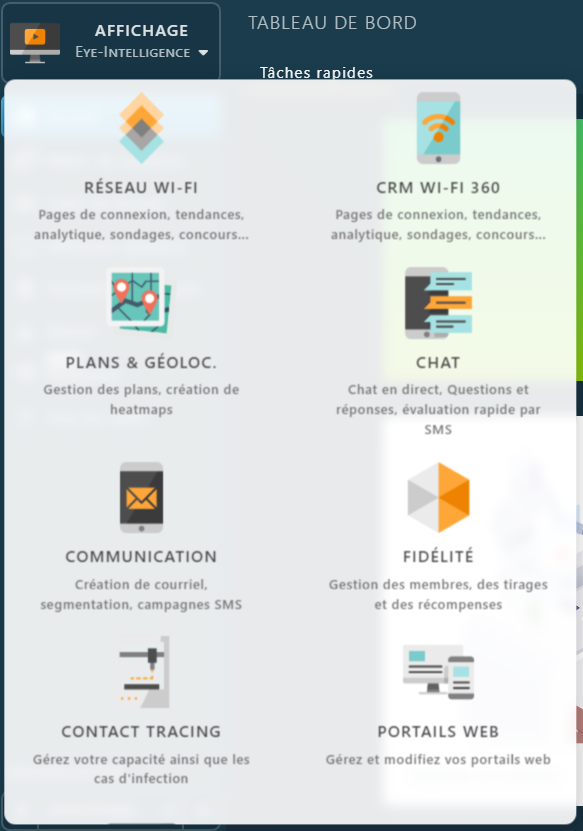 Eye-Intelligence est une grande plateforme centralisée. C’est pourquoi nous avons divisé la navigation en espaces de travail.