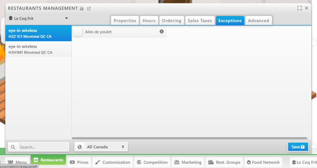 When managing multiple restaurants. Franchisees, or the Headquarter can use Exceptions to customize the menu for one or multiple restaurants.