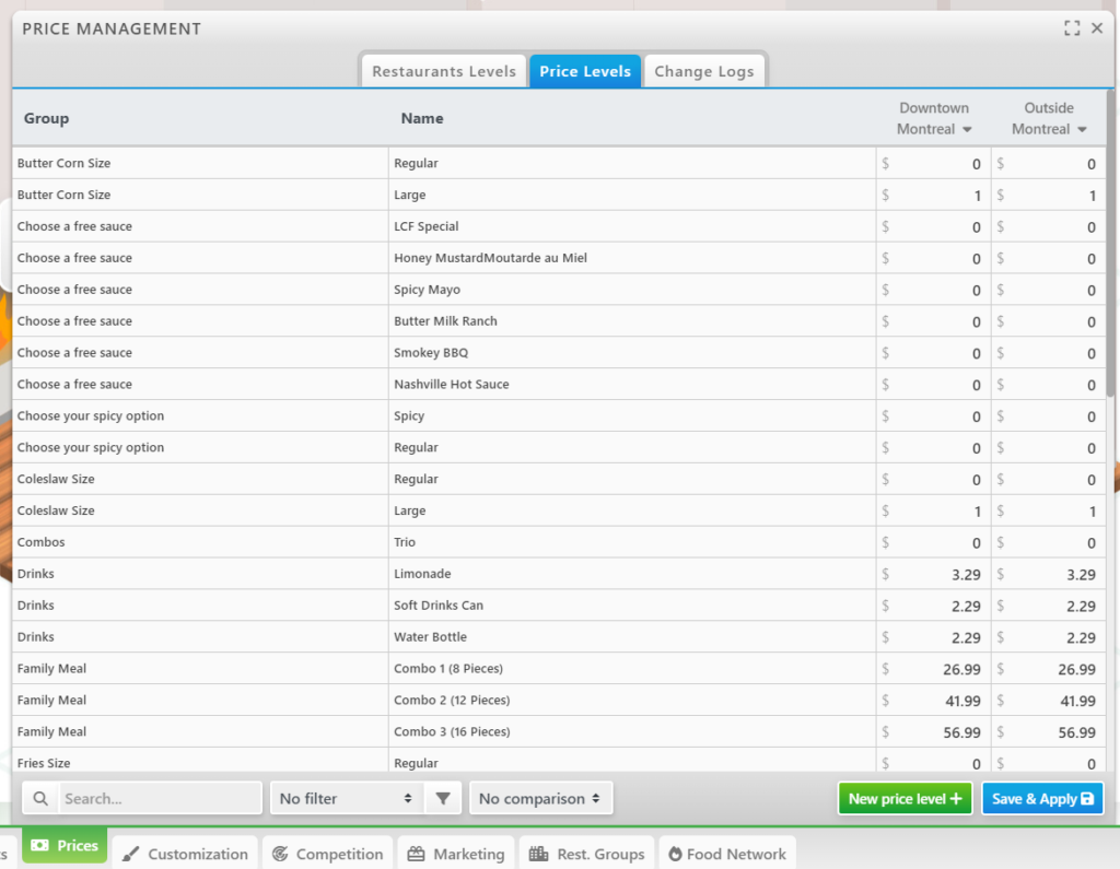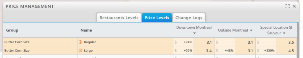 In the Price Levels tab of the Prices page, you will have access to a powerful table to manage all your prices.