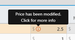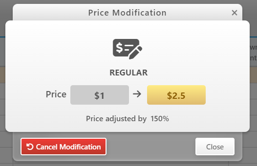In the Modification recap, you will see the original price and the new one including by how much you changed the value. You can also undo the modification and it will revert back to the original value.