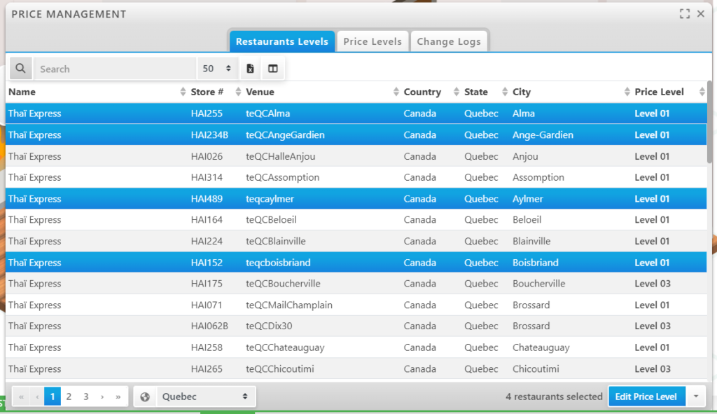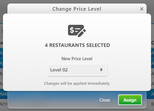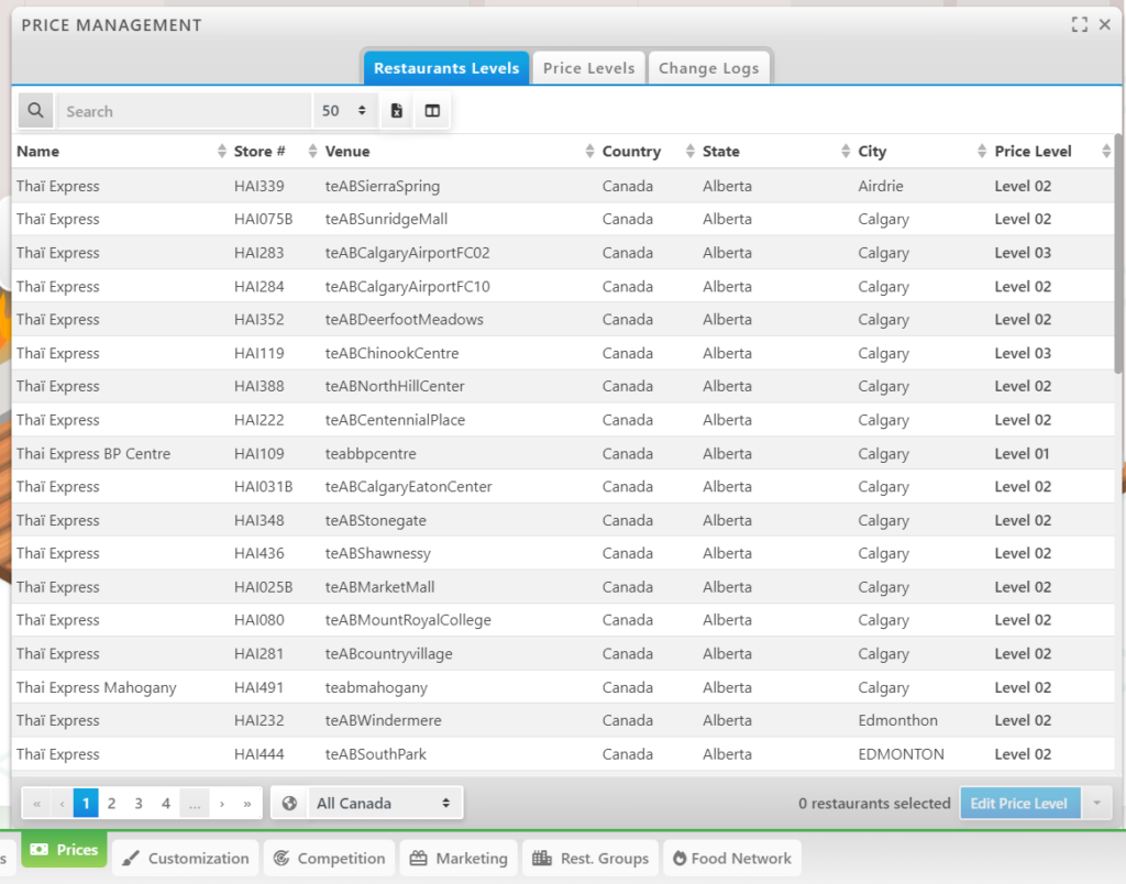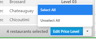 Click on the Edit Price Level button to change the price level of all the restaurants selected.