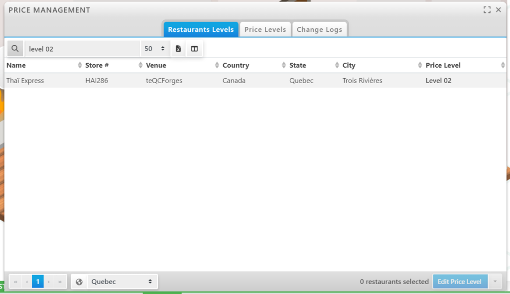 You can manage Restaurant Price Levels in 2 locations: the Restaurant Management or in the Prices Management. We recommend to work through the Prices Management as it provides an overview of all your restaurants at once.