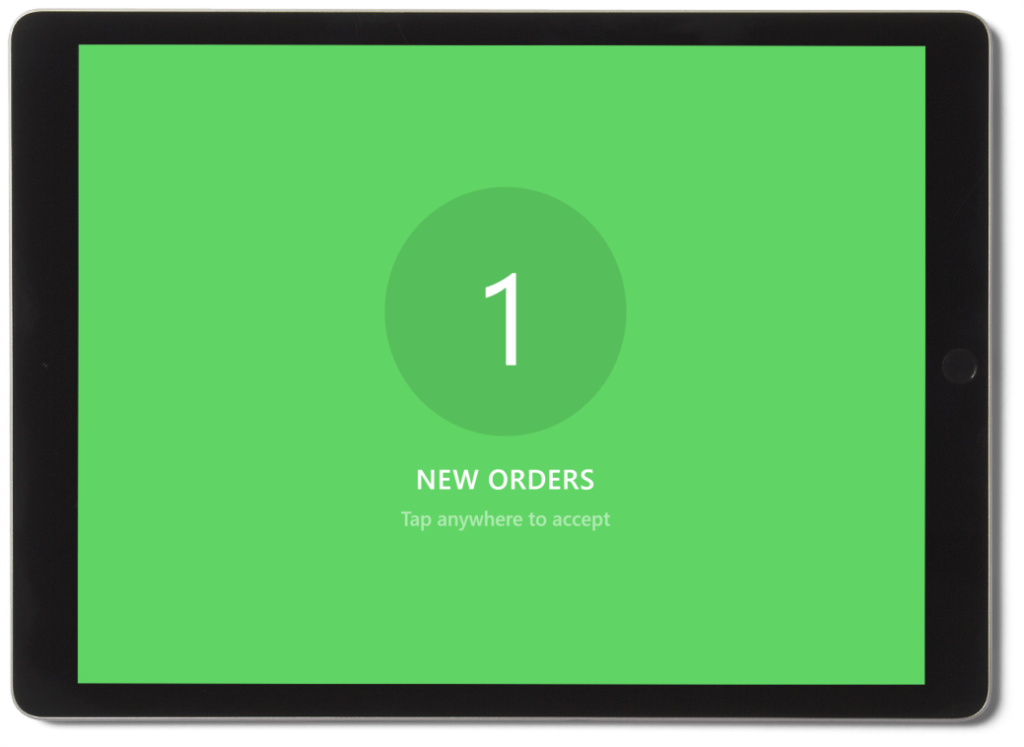 Whenever there is a new order, it will pop up a green screen and ring a looping sound.