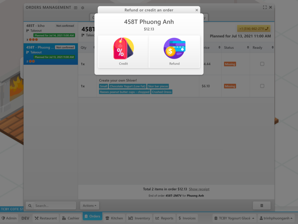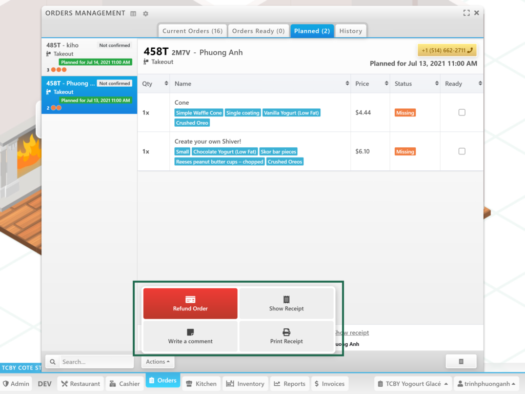 At any time when there is a problem with the order, Refund can be chosen. Click Actions -> Refund Order (Refund confirmation window will be popped up) -> Confirm.