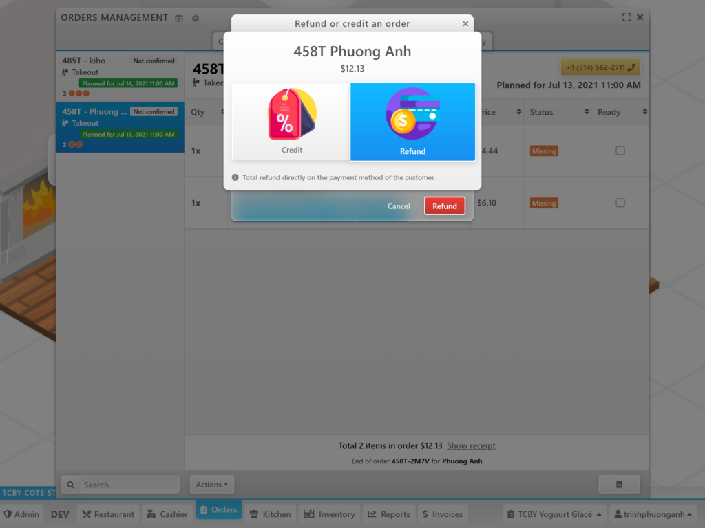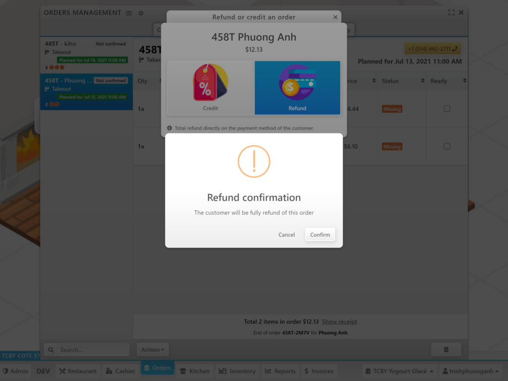 - Click Refund -> Refund -> (refund confirmation) -> Confirm