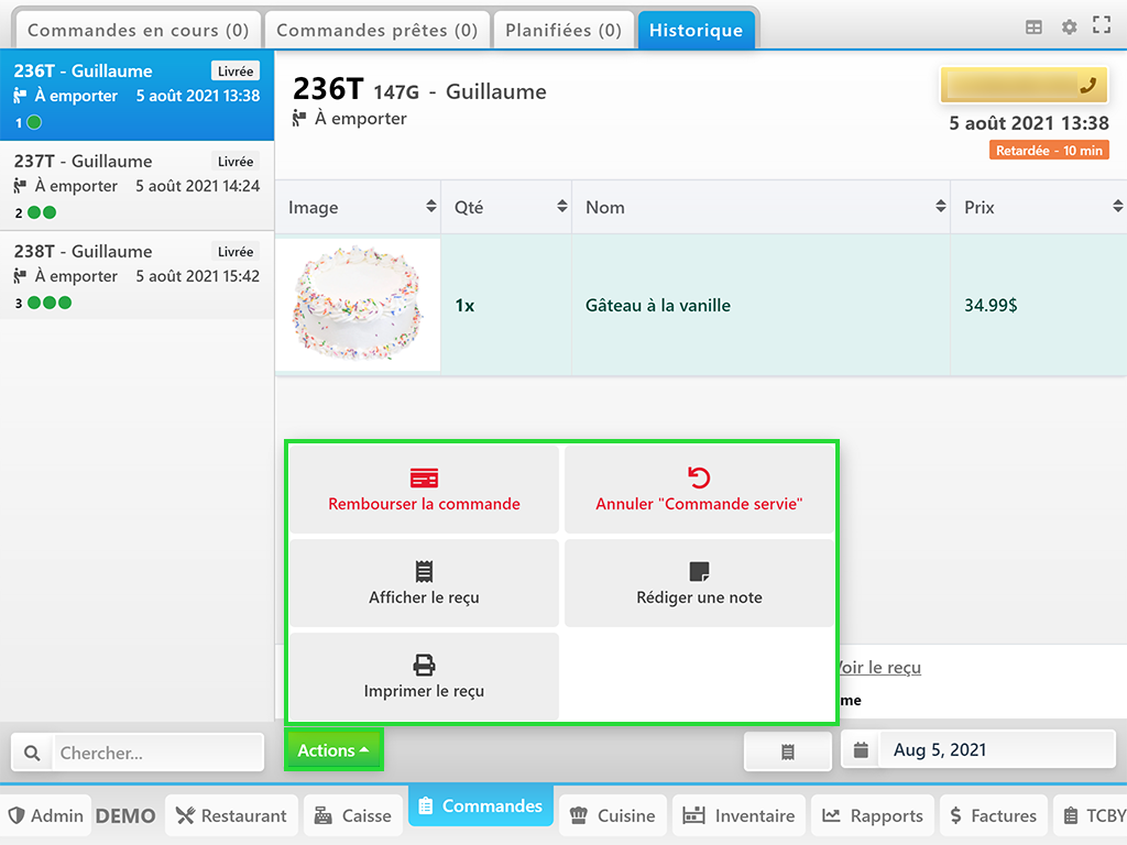 Pour ce faire, il faut cliquer sur le bouton Actions et choisir l’option Rembourser la commande.