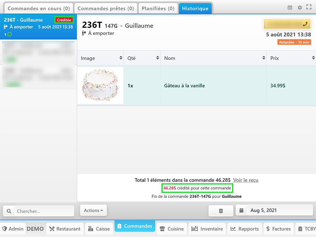 À n’importe quel moment, une commande peut être Remboursée ou Créditée.