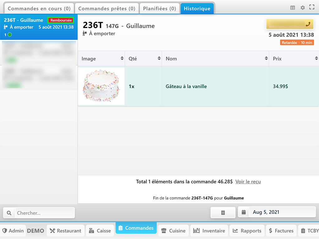 Voilà à quoi ressemble le statut d’une commande remboursée.