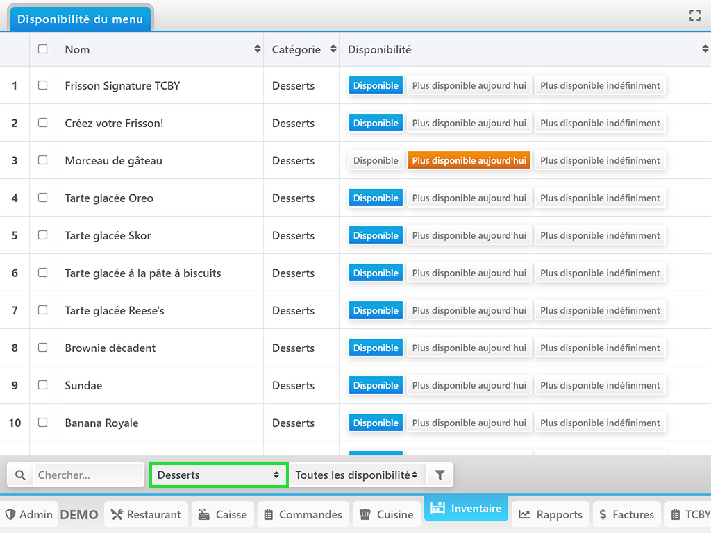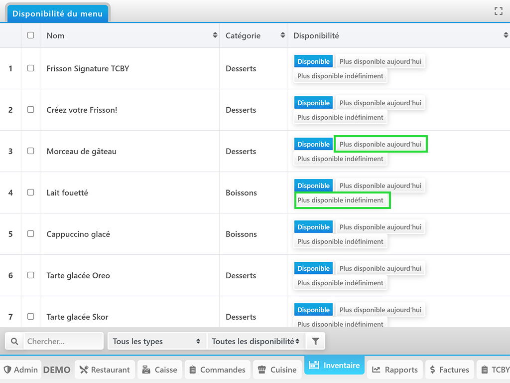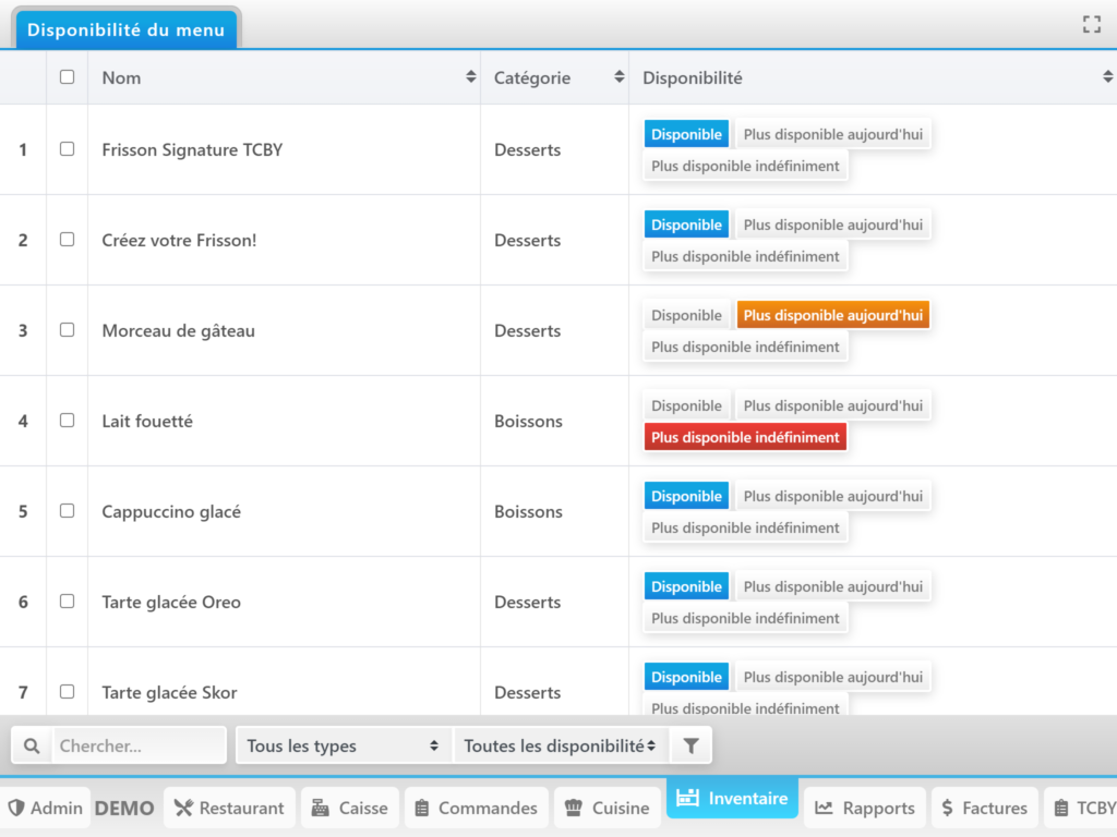 Le restaurant peut remettre le statut de l’article sur Disponible à tout moment!