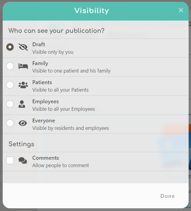 The post’s visibility can be changed at the top of the page, below the establishment’s name. You have the choice to make a post: