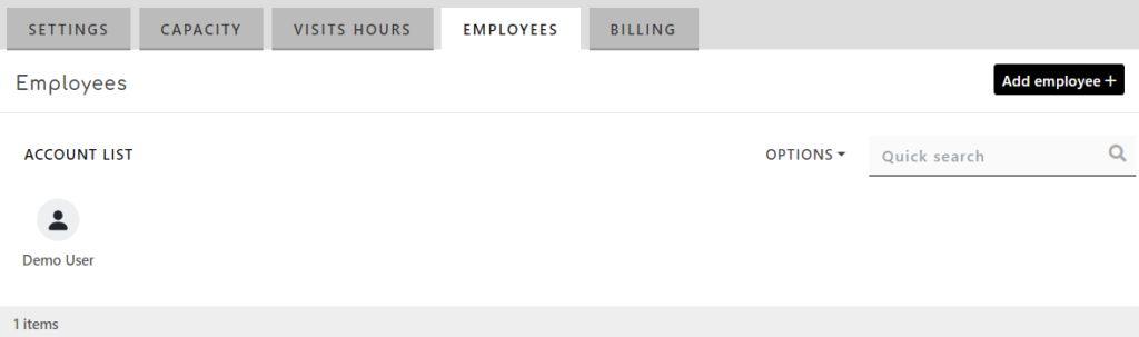 On your administrator account, in the SETTINGS page, select the EMPLOYEES tab and click on Add employee.
