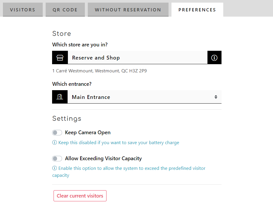 Managing Visitors is the core of Reserve and Shop. Here is how it works: each location has a limited number of spots available for each location (store or mall), we call it the capacity. This limit is defined in your business settings and your administrator can change it at any time, even schedule it per day of the week.