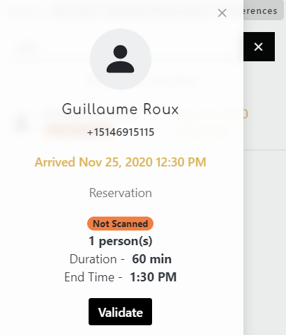 Click on the name of the person to display more information and validate the reservation.