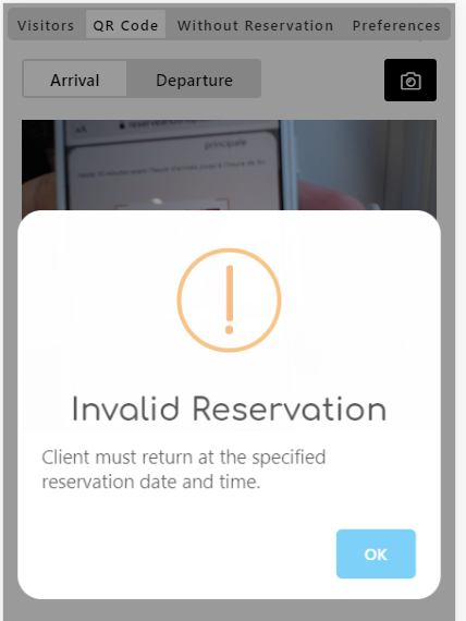 If the person comes in too early, or with a wrong QR code, you should see the following message
